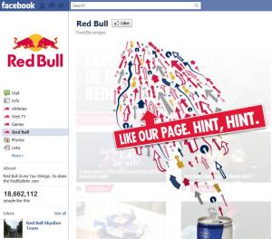 You do not have to land a visitor on your Wall. My suggestion is that you can select a landing tab that most likely will an initial engagement. For example, Red Bull encourages visitors to “Like” the fan page.