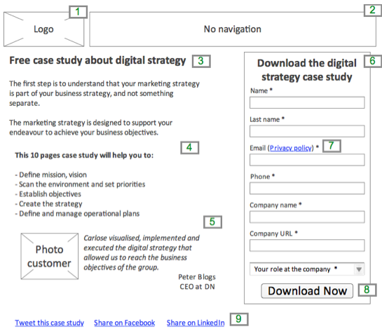 2. Limit the navigation (or remove it at all): a landing page is used for the purpose of encouraging visitors to take one specific action (CTA). Leaving the navigation might induce the visitor to browse in other pages than are not optimised for the specific objective you want to reach.