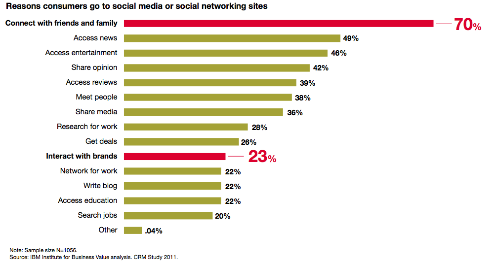 - More than half of consumers don’t even consider engaging with businesses via social sites. For them, social media and social networking are about personal connections with friends and family.